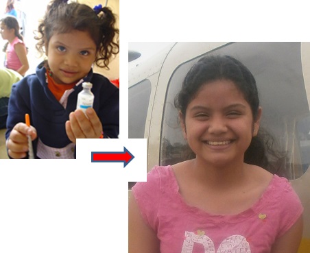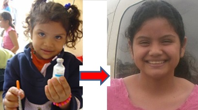 (izquierda) Samanta de 4 años → (derecha)Samanta de 13 años. Actualmente estudia en la escuela y vive feliz con su familia y amigos todos los días.