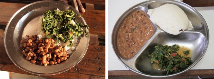 朝食:メイズ粉のポリッジ。昼食:シマ、豆。夕食:シマ、野菜(主に葉物野菜とトマト、たまねぎの炒め煮)。