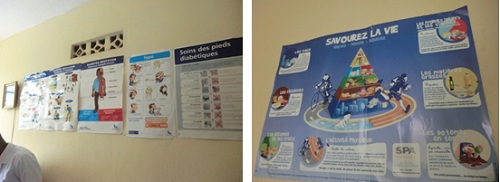 (左)診療所の壁にはケニアでもよく見かける糖尿病のポスターが貼ってありました。
