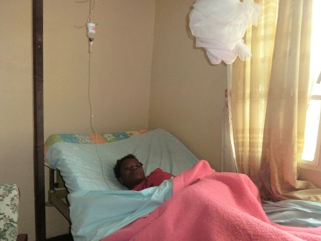 3床しかない入院用のベッドで、低血糖の点滴治療を受けるクリスティンさん