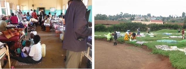(右)看護が不足する中、患者さん家族が食事や洗濯をするため、院内の庭は「洗濯物干し場」と化します。家族のいない入院患者さんも見知らぬ他の入院患者さんの家族に助けてもらっています。物質的に貧しくても、心の豊かさは生きているのです