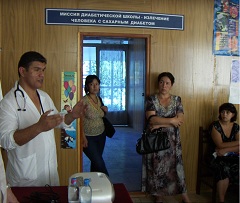 11世紀に活躍したイスラムの名医イブン・シーナ(肖像画はナボイの外来病棟前写真にあり)の故郷でもある古都ブハラでは、ウマル先生がいらっしゃる内分泌疾患診療所を訪れました。地域の糖尿病担当医のリーダーであるウマル先生が把握されている糖尿病患者数は、総人口150万人に対し1型糖尿病患者数1,390人、2型糖尿病患者数5,800人で、52人の内分泌医が市内4つの内分泌医療センターに配属されています。各施設は110床です。