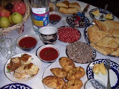 ウマル先生が用意してくださった夕食。果物が豊富だが糖尿病患者の身には糖質過多! |