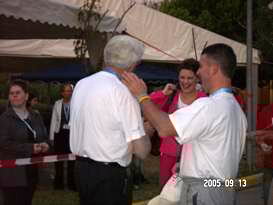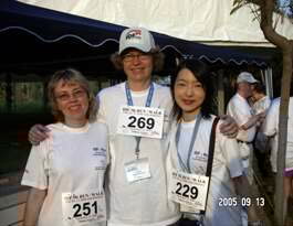 私が見た限り、参加者は皆、白人ばかりで、おそらく、アジア人は私1人で、しかも一番のチビでした。最後にビリでゴールした時は、拍手で迎えられ、テレビカメラとインタビューマイクを向けられてしまいました。それでも「足の長さからして、少しハンデをあげなきゃ」「日本人では1位だよ」などとの慰めの言葉も頂戴しました。
