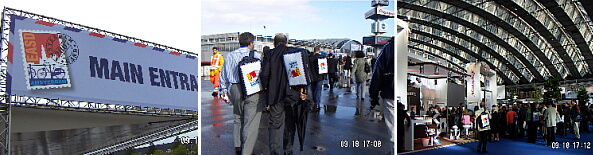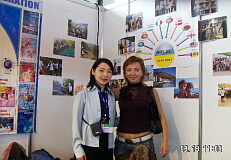 (左)(中) IFLのブース (右) IDFスタッフ クロエさんと