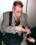 (左) ドイツ糖尿病協会のシュミット先生、インスリンポンプを見せてくれました。