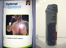 左の写真はイーライリリー社のインスリン注入器のブース。大勢の人が集まっています。下の写真はファイザー社の吸入インスリンの吸入器。ペン型注入器より大きく私にとっては使い勝手はまだ良くないという印象です。