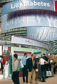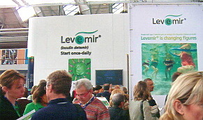 下の写真はノボ社の持効型溶解インスリン「レベミル」のブース。欧州ではすでに発売されています。