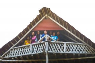 下の写真は参加者が就寝する場所ですが、広い空間に茅葺の屋根でできており、窓がついていません。そのため、参加者たちは夜に涼しい風を感じ、波の音を聞きながら過ごすことができました。
