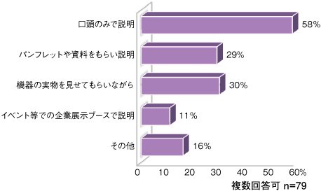 全回答者の1/4である、質問や相談をした経験が「ある」方からの回答で最も多かったのは、「口頭のみでの説明」でした。