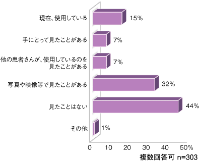 「よく知っている」と「基本的なことは知っている」を合わせると、本調査の回答者の57%が「知っている」と答えました。なかでも「(使用法も含め)よく知っている」と回答された方の多くは、インスリンポンプ療法のご経験者とみられます。
