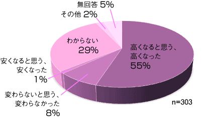 医療費が“高くなるというイメージ”の方、および経験から“高くなった”とする方は、55%と最も多い結果でした。