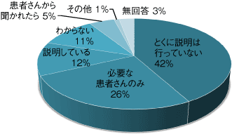 とくに説明は行っていない」が4割と最も多い回答でした。インスリン療法の選択肢の1つとしての紹介というより、ポンプが必要な患者さんへピンポイントに説明が行われていることが多いのかもしれません。