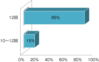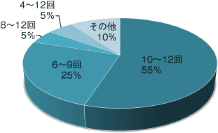 「10〜12回」と、ほぼ毎月という方が55%、「6〜9回」が25%でした。また、“最近、経済的な理由で来院を延ばす人が増加している”とのコメントもありました。