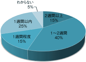 「1〜2週間」と回答された方が4割と最も多く、25%の医師は「1週間以内」に慣れるだろうとの回答でした。