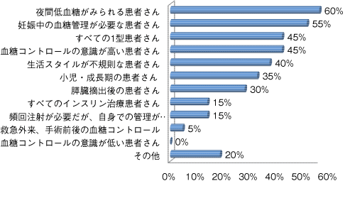 「インスリンポンプ療法」は、どのような患者さんに適応するとお考えですか?(n=20)