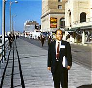 図5 アトランティック・シティ海岸の板張り歩道(board-walk)にて、筆者 1959.4.15撮影