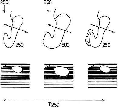 さて99mTc標識試験食法でもアセトアミノ フエン法でも神経障害のない糖尿病者の胃排出能は亢進している結果が得られた。依田敏行博士(郡山女子大学教授)は早朝空腹時に温水250mLを飲ませてただちに超音波診断装置で胃の横断面積を求め、すぐにさらに250mLを飲ませて500mLの温水が250mLの面積になる時間を求める方法を考案した(図4)。