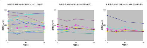 【低カロリー和菓子を食べたときの血糖値の変動】