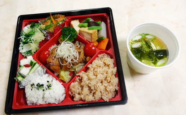 | 炊き合わせ | 大根30g、人参15g、三度豆5g、絹厚揚げ25g、どんこ椎茸1/4枚、出汁、パルスイート、醤油 |